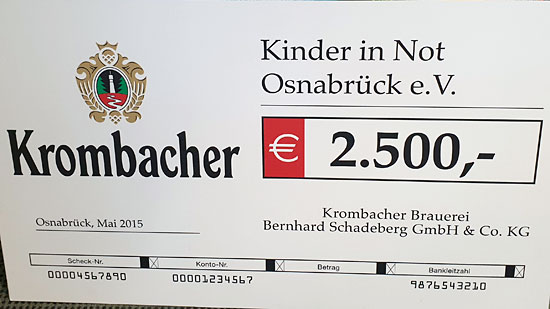 Die Steuerberatungsgesellschaft Klöker und Partner, Osnabrück, spendet im Mai 2016 aus Anlass des 40jährigen Betriebsjubiläums 5.000,00 €.