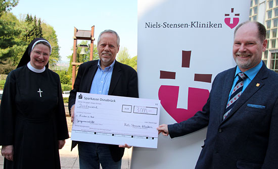 Michael Steinberg, betonte, dass Patienten, Angehörige, Besucher und Mitarbeiter in den Niels-Stensen-Kliniken einen wesentlichen Anteil an der Spende haben. Ohne die Spendenfreudigkeit in den Häusern der Niels-Stensen-Kliniken wäre die Unterstützung für Kinder in Not in dieser Form nicht möglich gewesen. Auch weiterhin kann an allen Standorten der Niels-Stensen-Kliniken gespendet werden: An den Informationen der Krankenhäuser in Osnabrück, Georgsmarienhütte, Melle, Ankum, Ostercappeln und Bramsche sind Flyer ausgelegt und Sammeldosen aufgestellt.