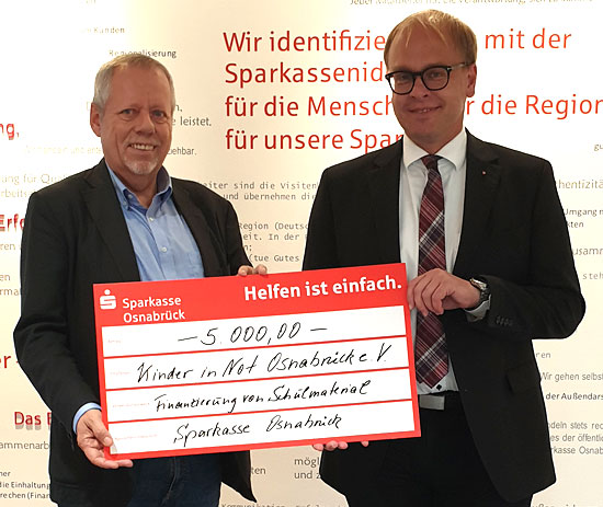Robert Seidler vom Verein „Kinder in Not Osnabrück“ begrüßt so viel Engagement: „Ich freue mich immer wieder, wenn sich Unternehmen aus der Region mit uns für Kinder in der Region stark machen.“ Das Geld werde nun in enger Zusammenarbeit mit der Caritas und der Diakonie an bedürftige Familien verteilt und als Zuschuss für den Kauf von Schulmaterialien eingesetzt. Der Verein „Kinder in Not Osnabrück“ wurde 2006 gegründet und setzt sich seitdem insbesondere für Kinder aus finanziell benachteiligten Familien ein. In nun schon mehr als 16 Jahren konnten Spenden von über 1 Million Euro erreicht werden, mehr als 10.000 Kinder konnten gefördert werden, mehr als 1.000 Kinder konnten das Abitur nur mit der finanziellen Unterstützung des Vereins erreichen. Trotzdem so Robert Seidler: „Die Politik reagiert auf dieses Problem nicht, an dem Brett müssen wir weiter bohren und werden das auch nicht aufgeben.“